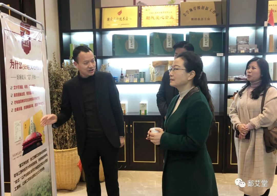 下午走访企业,吴曙来到江西鄱艾生物科技有限公司、听取了董事长余学林介绍公司的运行情况。江西鄱艾生物是一家专业从事艾草种植、种苗培育、艾制品研发和生产以及国内外贸易的一二三产的高科技农业公司。公司自有全省艾草种植基地31000亩,通过“公司+基地+合作社+贫困户”的模式,带动贫困户1300余户,受益人数达4000余人,形成了以鄱阳为中心,辐射周边县市的鄱艾产业带。